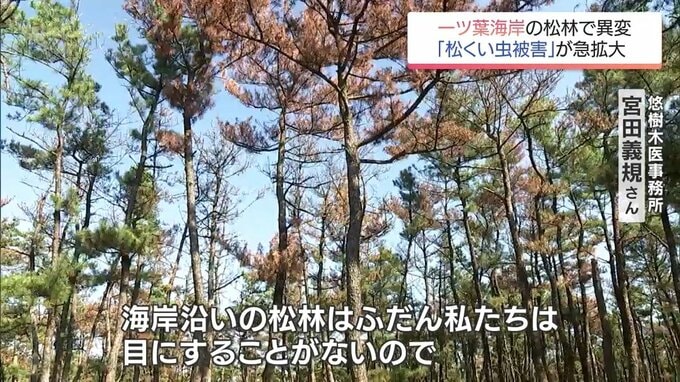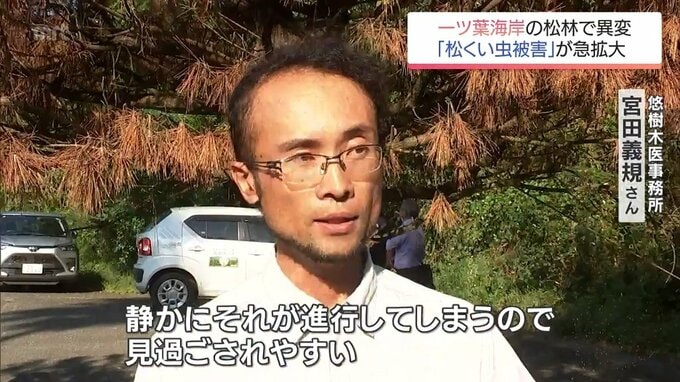 「今年の松枯れは、前の年のものを引き継いで、さらに広がっているっていうことが言えます。海岸沿いの松林というのは、普段、私達は目にすることがないので、静かにそれが進行してしまうので、見過ごされやすいのです」