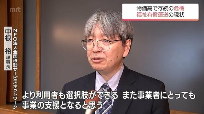 福祉有償運送の事業者などでつくる、NPO法人全国移動サービスネットワークの中根 裕 理事長は、福祉有償運送の維持は全国的な課題となっていて、まずは行政が実態を把握する必要があると指摘。