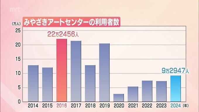 コロナ禍以降に利用者数が落ち込む「みやざきアートセンター」 宮崎市が今後のあり方を検討 2025年10月23日(木) 12:04 国内 宮崎市は、コロナ禍以降、利用者数が落ち込んでいる「みやざきアートセンター」の今後のあり方について検討を行っています。宮崎市中心部にある「みやざきアートセンター」は、2009年に開設され、2016年には利用者…