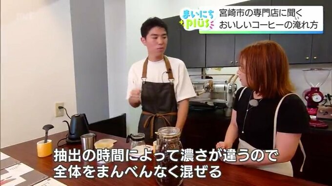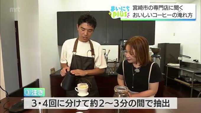 「この時のポイントは、ゆっくり注ぐことでコーヒーの味が均一に抽出されます」