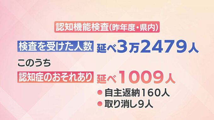 昨年度、県内で認知機能検査を受けた人は延べ3万2479人で、「認知症のおそれあり」と判定された人は延べ1009人。