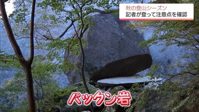 ゲームキャラクターの「パックマン」にそっくりなことから、「パックン岩」として話題になっている岩です。