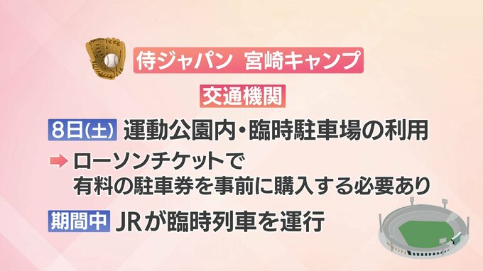 侍ジャパンの宮崎キャンプ、場所は宮崎市の県総合運動公園です。