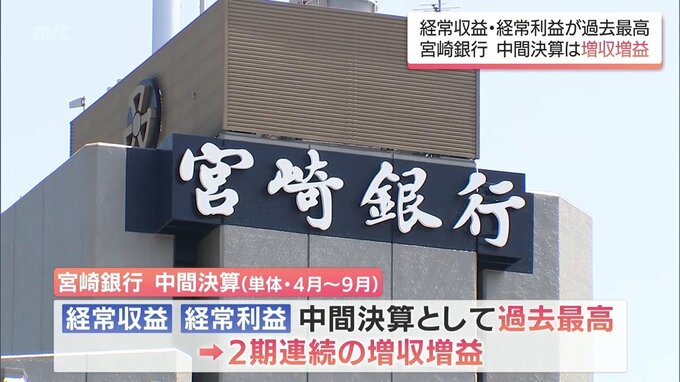 宮崎銀行 中間決算 2期連続の増収増益 経常収益と経常利益がいずれも過去最高に 2025年11月6日(木) 19:00 国内 暮らし・マネー 宮崎銀行の今年9月期の中間決算は、経常収益と経常利益がいずれも過去最高となり、2期連続の増収増益となっています。宮崎銀行単体の今年4月から9月までの中間決算は、売り上げにあたる経常収益が391億9300万円で…