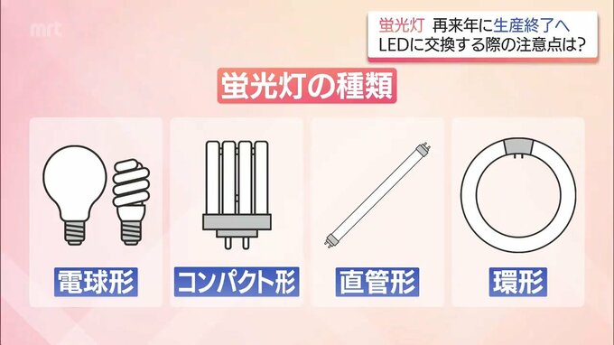 蛍光灯は「電球形」「コンパクト形」「直管形」「環形」に分類されますが、それぞれで注意点が違います。