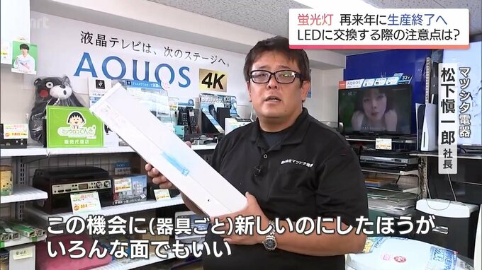 (マツシタ電器・松下愼一郎社長)「一番いいのはやっぱりもう10年以上経っている照明が多いので、この機会に(器具ごと)新しいのにされた方が、いろんな面でもいいのかなと思います」