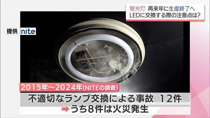 NITEの調査では、2024年までの10年間に不適切なランプ交換による事故が12件発生し、そのうち8件が火災に至っているということです。