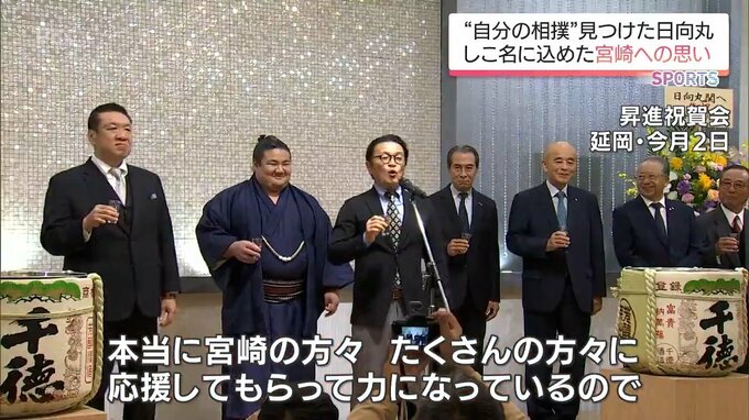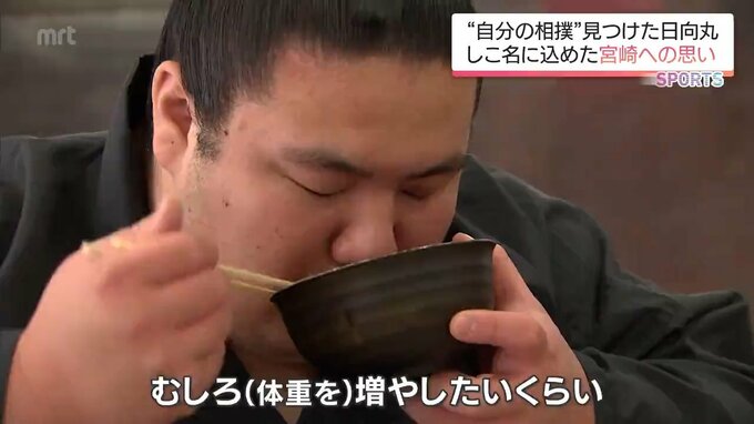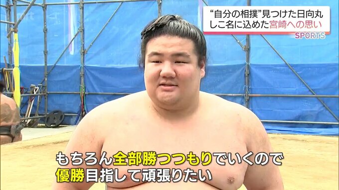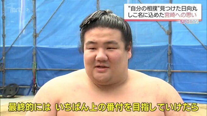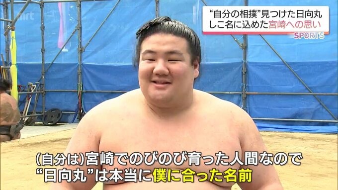 (日向丸)「本当に宮崎の方々、たくさんの方々に応援してもらって力になっているので、地元を背負って、地元にちなんだしこ名にしたいと思った。両親や師匠に相談して決めたしこ名なんですけど、(自分は)宮崎でのびのび育った人間なので日向丸って本当にぼくに合った名前だと思う」