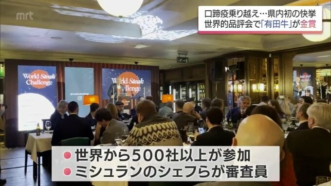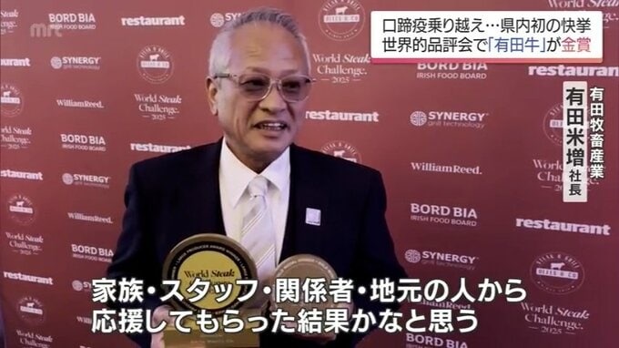世界から500社以上が参加し、ミシュランのシェフらが審査員を務める和牛部門で、西都市の有田牧畜産業のブランド牛「有田牛」が、見事、金賞を受賞しました。