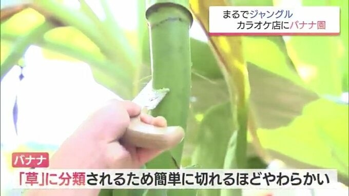 一見、木のようにも見える太い部分ですが、実はバナナは「草」に分類されるため簡単に切れるほどやわらかいんです。