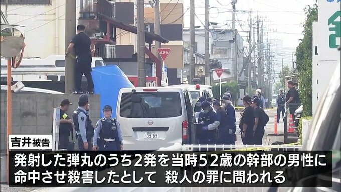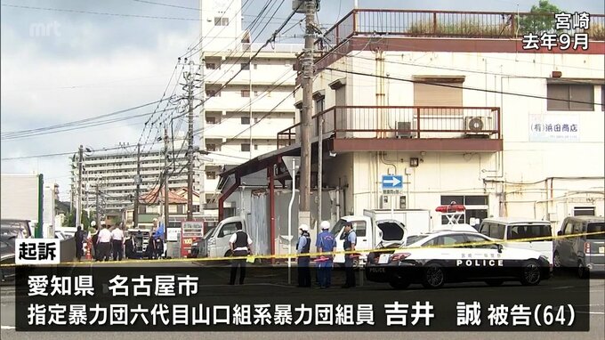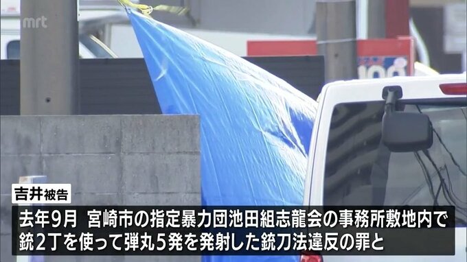 起訴状によりますと、吉井被告は、去年9月、宮崎市の指定暴力団池田組志龍会の事務所敷地内で、拳銃2丁を使って弾丸5発を発射した銃刀法違反の罪と、発射した弾丸のうち2発を当時52歳だった幹部の男性に命中させ、殺害したとして殺人の罪に問われています。