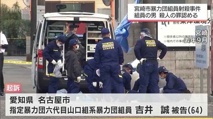 宮崎市暴力団幹部射殺事件の初公判 被告側は殺人などの罪を認めるも「公共の場所での発砲ではなかった」と起訴内容の一部を否認 2025年11月19日(水) 19:01 国内 去年9月、宮崎市の暴力団事務所で組員の男性が射殺された事件の裁判員裁判が始まりました。殺人と銃刀法違反の罪に問われている暴力団組員の男は起訴内容について殺人の罪を認めました。起訴されているのは、指定…