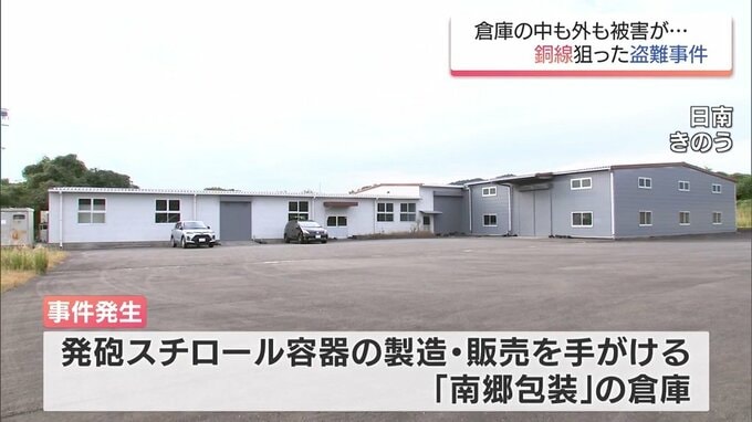 「日南市東郷にある企業の倉庫です。こちらであるものが盗まれる被害が発生したということです」