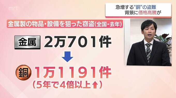 材質別では、半数以上が銅で、ここ5年で4倍以上となっています。