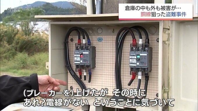 「(被害に)気づいたのが今週の月曜日、11月17日の午前中に来たところ、電気がつかないということで調査したところ、電線が切られて盗まれているのが分かった」