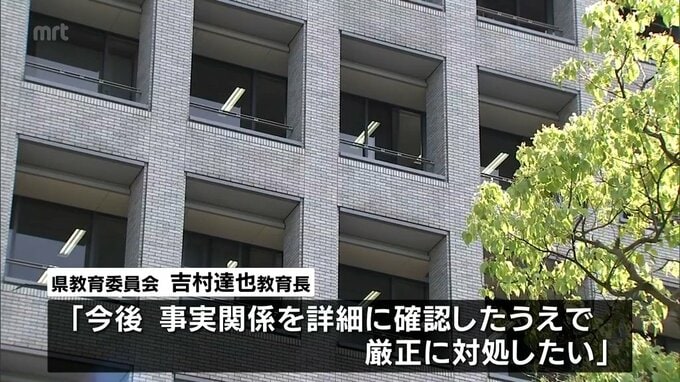 県教育委員会の吉村達也教育長は、「今後、事実関係を詳細に確認したうえで厳正に対処したい」とコメントしています。