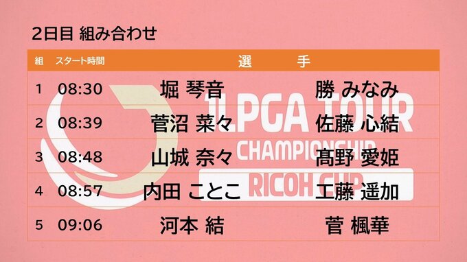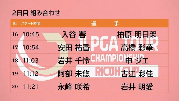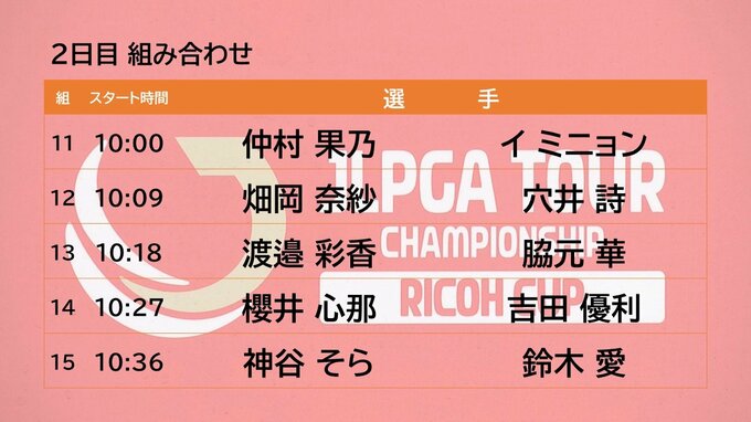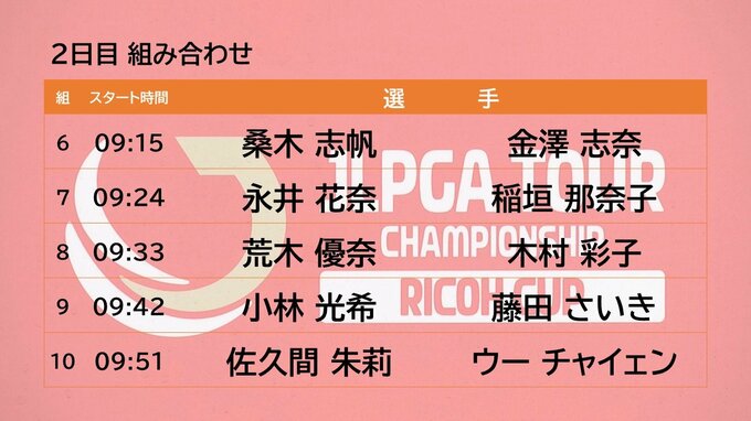 そして、初日、5アンダーで首位タイの永峰 咲希(宮崎市出身)は、同じく首位タイの岩井 明愛と最終組、午前11時21分のスタートとなっています。