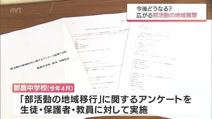 学校では、今年4月、部活の地域移行に関するアンケートを生徒や保護者、それに教員に対して実施。