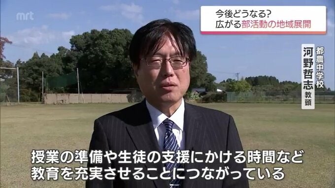 「(教員としては)直接部活動の指導にかかわる時間が減るので、授業の準備や生徒の支援にかける時間とかそういった教育を充実させることにつながっている。学校としては、まずは教育の質を上げることを第一に考えているので、地域の人と協力をしながら段階的に進めていきたい」