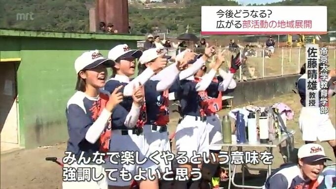 「通常の授業と違って、目的を同じくする異学年の生徒同士で切磋琢磨して一つのことに取り組んでいくという、そういう意味もある。人数が足りないとか、大会に出ることができないとかあるが、みんなで楽しくやるという意味を強調してもよいと思う」