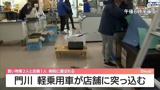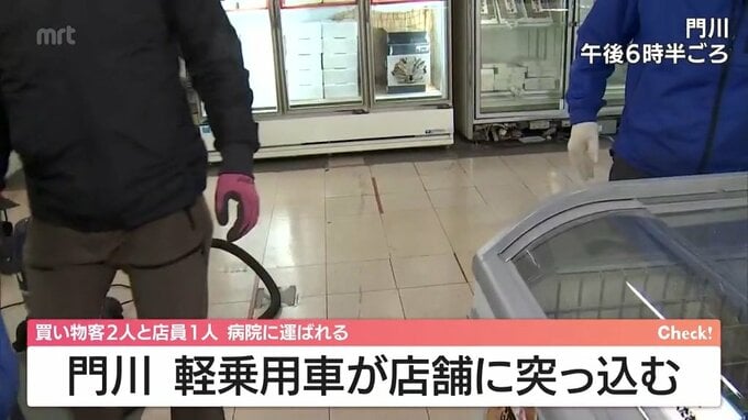 門川町で軽乗用車が店舗に突っ込む 店舗内にいた3人が病院に搬送 2025年12月12日(金) 18:11 国内 12日午後3時40分ごろ、宮崎県門川町で、70代の女性が運転する軽乗用車が店舗に突っ込む事故がありました。 この事故で、店の中にいた買い物客2人と店員1人が病院に運ばれました。 3人に意識はあるということです。