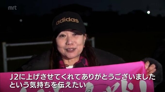 「とにかくJ2に上げさせてくれてありがとうございましたという気持ちを伝えたいです。J2昇格、ありがとう」