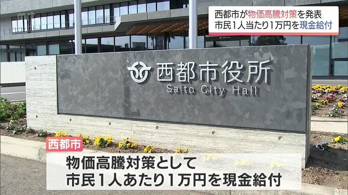 物価高騰対策 西都市は市民1人当たり1万円を現金給付 2025年12月26日(金) 17:13 国内 暮らし・マネー 宮崎県内の各市町村が物価高騰対策を打ち出す中、26日は、西都市が市民1人当たり1万円を現金給付することを発表しました。西都市は、26日、物価高騰対策を発表し、国が提案する「おこめ券」ではなく、市民1人あたり…