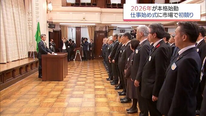 仕事始め式に初競り 2026年が本格始動 2026年1月5日(月) 19:02 国内 正月休みが明け、2026年が本格始動です。宮崎県庁では仕事始め式が行われました。一方、宮崎市の卸売市場では、今年初めての競りがあり、威勢のいいかけ声で活気にあふれました。県庁の仕事始め式には、県の幹部職…