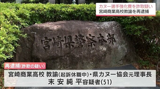 余った選手強化費約243万円を虚偽の報告書で返却せず 宮崎県カヌー協会元理事長の教諭(51)を詐欺の疑いで再逮捕 2026年1月6日(火) 19:00 国内 宮崎商業高校のカヌー部の監督を再逮捕です。選手強化費として交付された補助金について、虚偽の報告書を提出し、差額を返却しなかったとして宮崎商業高校の教諭で宮崎県カヌー協会の元理事長が詐欺の疑いで再逮捕…