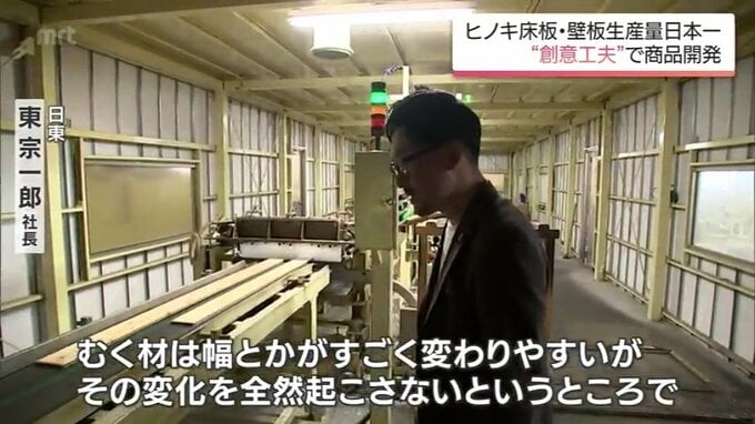 「日東」は、ヒノキの床板・壁板の生産量が30年連続で日本一となっています。