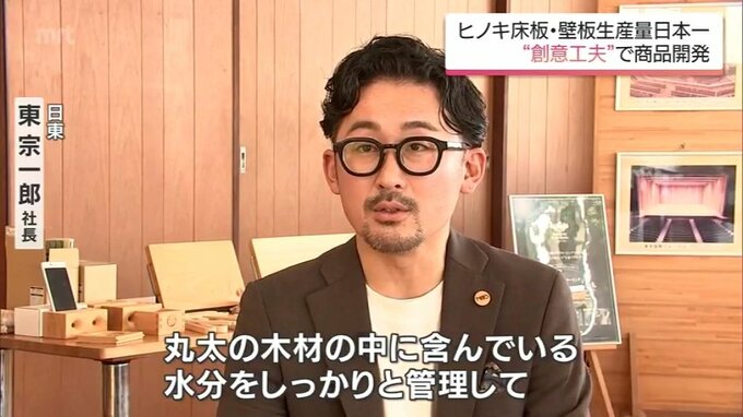 「丸太の木材の中に含んでいる水分をしっかりと管理して、無垢材は幅とかがすごく変わりやすいが、その変化を全然起こさないというところで、しっかりと品質管理をしている」