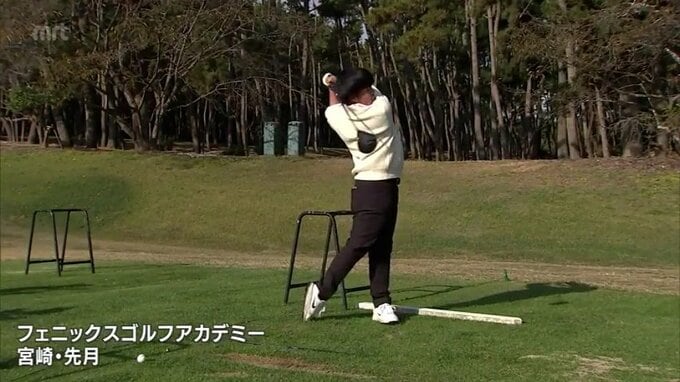 練習場でもくもくとボールを打つのは、宮崎市出身、勇志国際高校1年の長﨑大星選手。