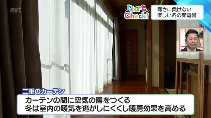 「カーテンの間に空気の層を作ることで、冬は室内の暖気を逃がしにくくし、暖房効果を高めることができます」