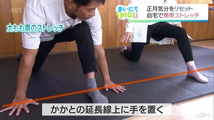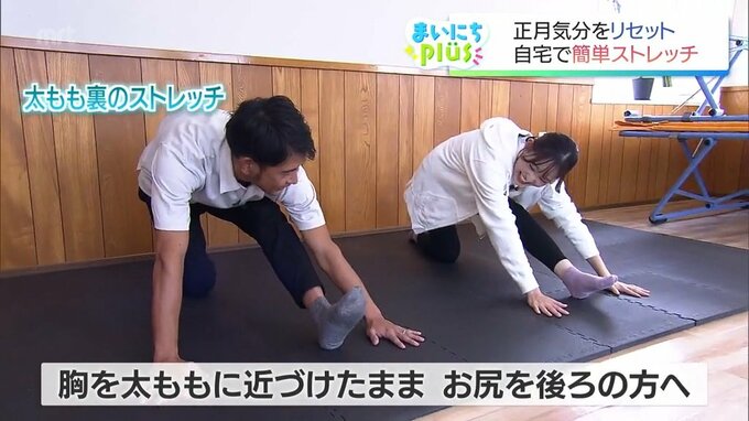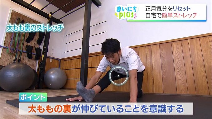 まずは、むくみや冷えの解消にもつながる太もも裏のストレッチです。