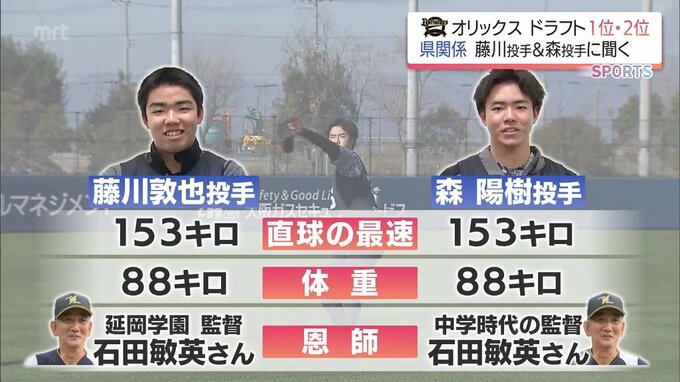 ストレートの最速は2人とも153キロ、体重も同じ88キロ、さらに藤川投手の恩師、延岡学園野球部監督の石田敏英さんは森投手の中学時代の監督でした。