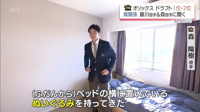「自分、クレヨンしんちゃんが好きなので、クレヨンしんちゃんのぬいぐるみを持ってきました。すごく眠りにつくのが早くていいです」