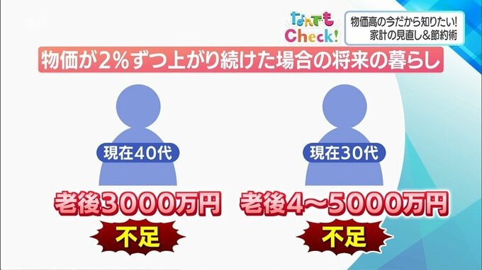 かつて話題になった「老後2,000万円問題」も、これからの物価上昇を考慮すると、40代の方は3,000万円、30代の方は4,000万〜5,000万円ほど不足するという試算もあります。