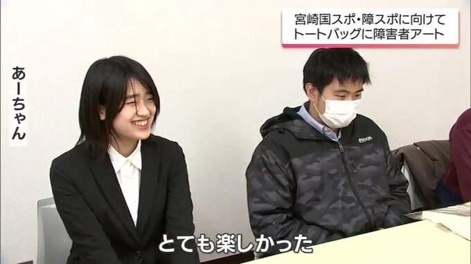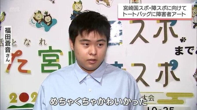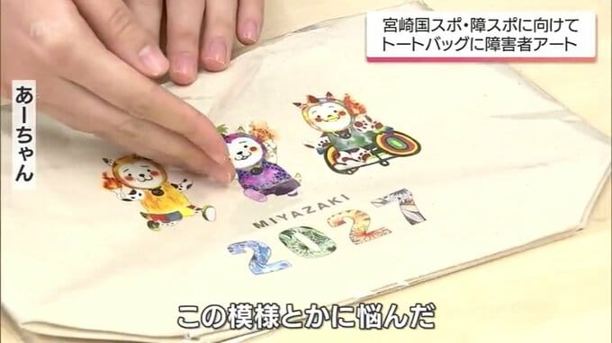 あーちゃんのデザインしたバッグには、トーチを持ったみやざき犬。