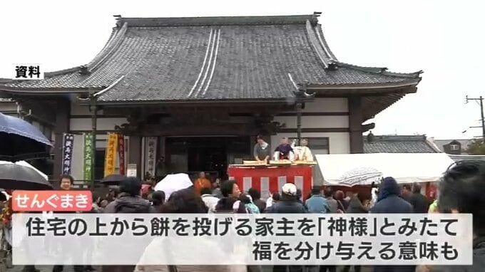 家のおはらいだけではなく、神楽や神社でも「せんぐまき」が行われるように、住宅の上から餅を投げる家主を「神様」とみたて、それを分け与えるという意味もあるという。