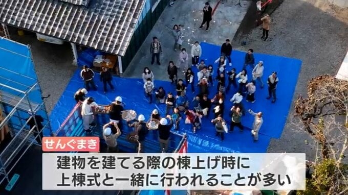 建物を建てる際の棟上げ時に、上棟式と一緒に行われることが多い「せんぐまき」。