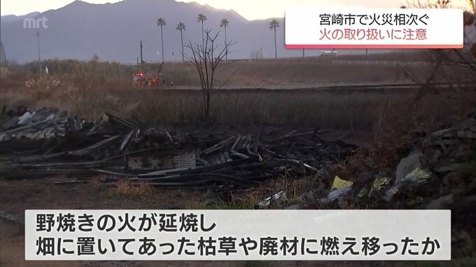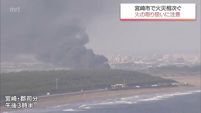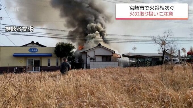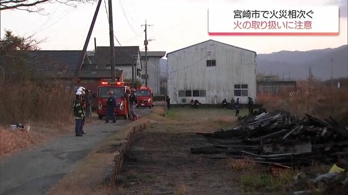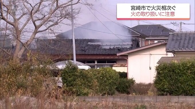 19日、宮崎市では火災が相次ぎ、消防は火の取り扱いに注意を呼びかけています。