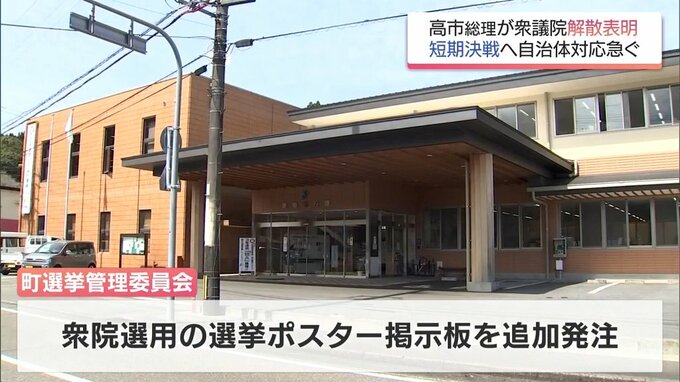 町選挙管理委員会では、衆院選用の選挙ポスター掲示板を追加で発注したほか、町長選・町議選の投票日に衆院選の期日前投票がかぶるなどするため、追加人員の確保にあたっています。