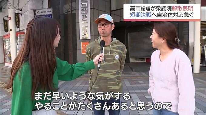 「解散早いですね。(Q.賛成、反対は?)反対ですね。お金を使いすぎです」