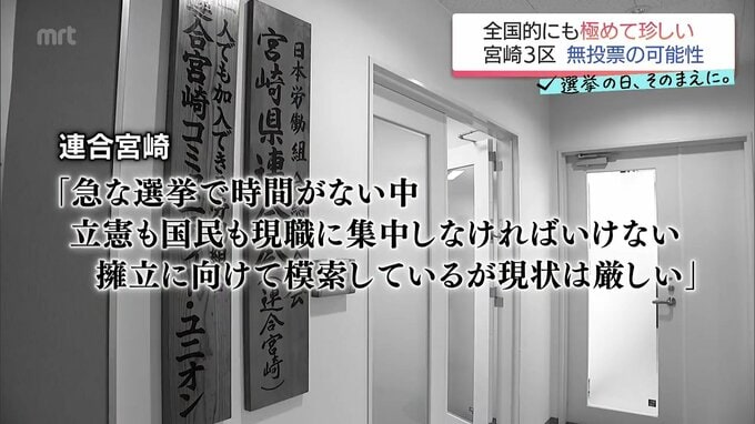 (連合宮崎)「急な選挙で時間がない中、立憲も国民も、現職に集中しなければいけない。擁立に向けて模索しているが、現状は厳しい」