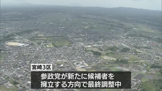 衆院選 参政党が宮崎3区に候補者擁立で最終調整 自民・現職と選挙戦へ 2026年1月25日(日) 17:53 国内 衆院選をめぐり参政党が宮崎3区に新たに候補者を擁立する方向で最終調整していることが分かりました。衆院選について宮崎3区では、これまで自民党の現職のみが立候補を予定していましたが、関係者への取材で参政党…