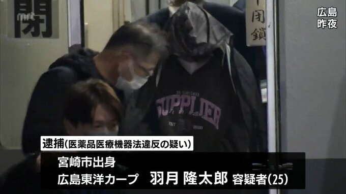 医薬品医療機器法違反の疑いで逮捕されたのは、宮崎市出身で広島東洋カープの羽月隆太郎容疑者(25歳)です。