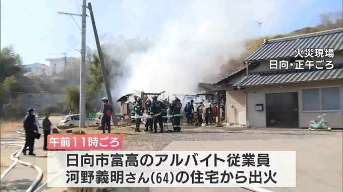 28日午前11時ごろ、日向市富高のアルバイト従業員、河野義明さん(64歳)の住宅から火が出て、近くにいた人が「家が燃えている」と119番通報しました。