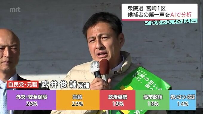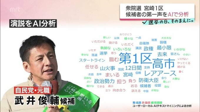 AIによる分析でも「高市氏」がキーワードとして目立ち、「高市政権」継続のための役割を宮崎1区で担わせてほしいと訴えました。