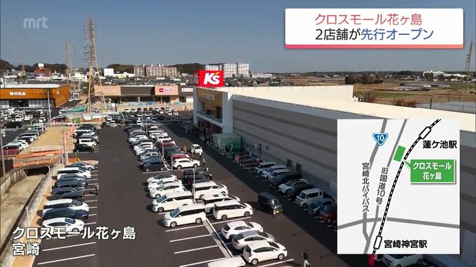 宮崎市花ヶ島町の大型商業施設「クロスモール花ヶ島」 2店舗が先行オープン 2026年1月29日(木) 17:09 国内 暮らし・マネー 宮崎市花ヶ島町で建設が進められてきた大型商業施設の「クロスモール花ヶ島」で一部の店舗がオープンしました。初日の29日は多くの買い物客でにぎわいました。(玉岡克希記者)「ついに、きょう、オープンを迎える…