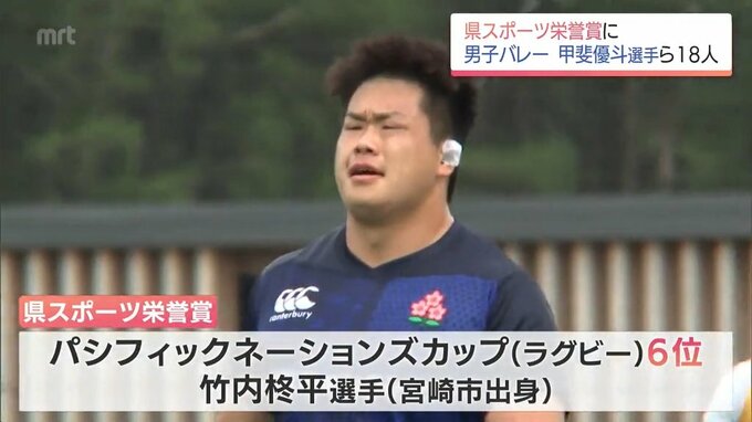 県出身や県内在住の選手に贈られる県スポーツ栄誉賞に選ばれたのは、バレーボールネーションズリーグで6位入賞した延岡市出身の甲斐優斗選手。